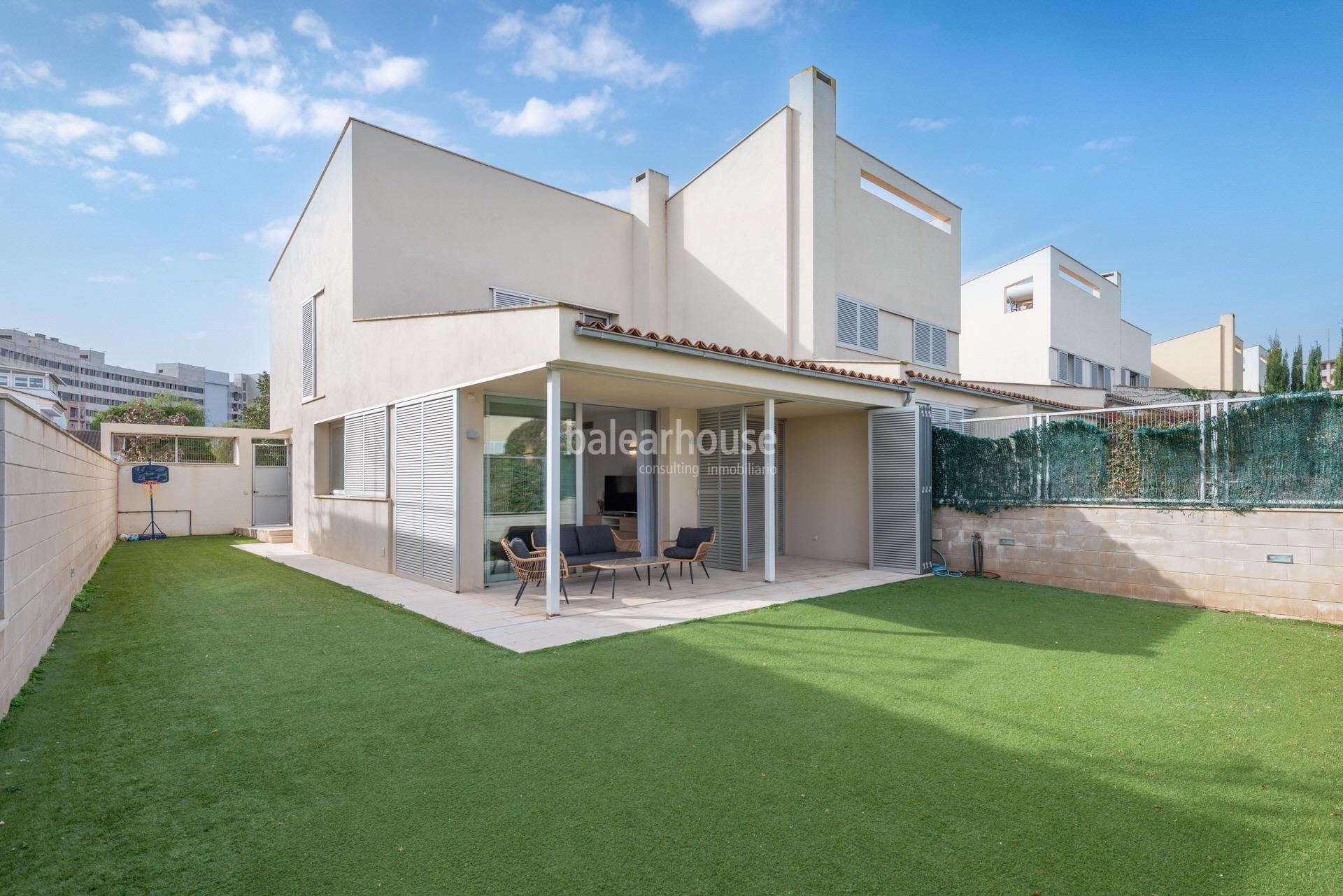 Modern newly built detached houses in the green area of Sa Teulera, with terrace and garden.