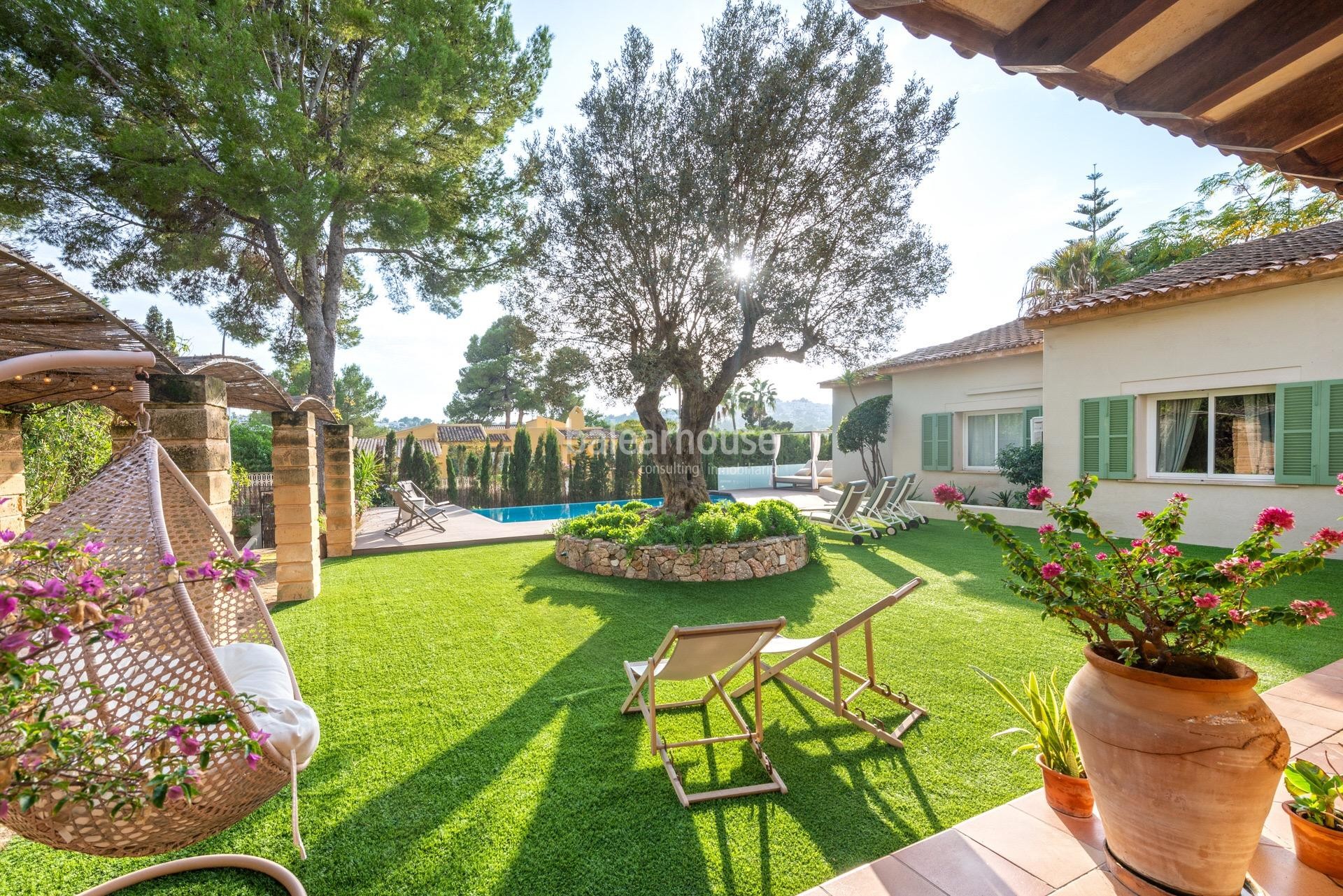 Excellent villa with sunny terraces and private pool situated in a green area close to Son Vida.