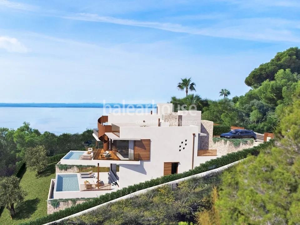 Modern newly built villa in Alcudia with unobstructed sea views, solarium, swimming pool and garden