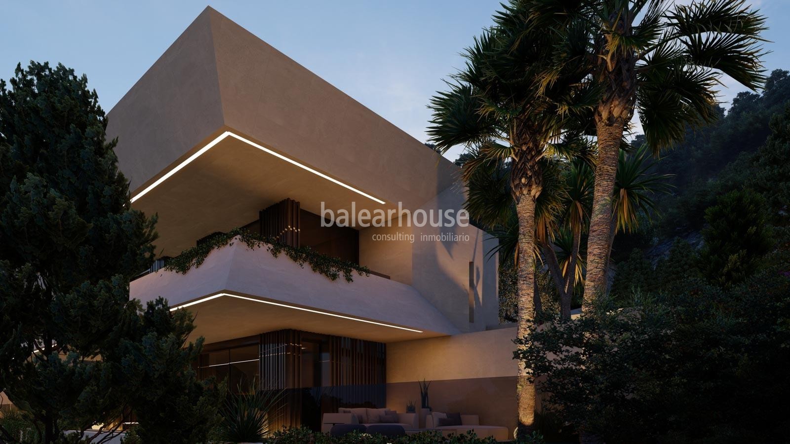 This project consists of a large avant-garde villa that respects the landscape, with a surface area of 659 m2, built with noble materials that give strength to the design and large windows to be in contact with the beautiful landscape. Its interiors are designed as a succession of large, open and continuous ultra-modern spaces where light invades every corner. It will have six bedrooms and six bathrooms and will have almost 367 m2 of outdoor spaces with terraces, garden and large swimming pool of 73 m2 as well as 285 m2 of semi-basement floor and other exclusive features.