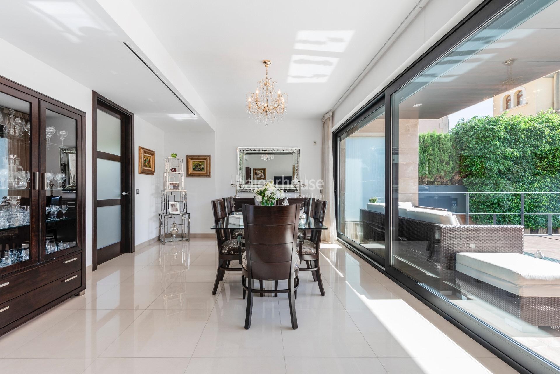 La soleada y tranquila zona residencial de Ciudad Jardín en la costa de Palma y junto a la amplia y bonita playa de aguas cristalinas, es donde se sitúa esta villa totalmente reformada bajo un diseño contemporáneo y sofisticado de materiales de alta calidad y cuidados acabados y a la que se ha dotado de todas las comodidades.